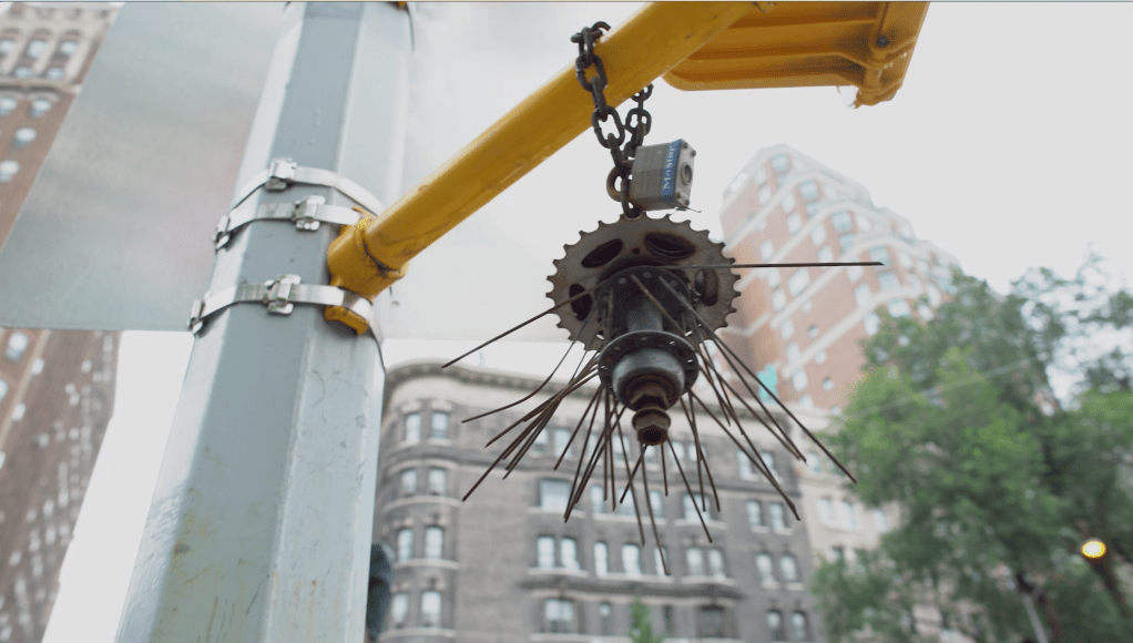 Linus is known for his fantastical furniture, visionary abstract representational sculpture, painting, imaginative outstillations, and woodcut prints. The Art of Linus Coraggio – 3D Graffiti is a film is about a genre Coraggio pioneered in 1982 called 3D Graffiti – small metal sculptures, some with mixed media and text, attached clandestinely to no-parking sign posts in New York City and in other cities around the United States.