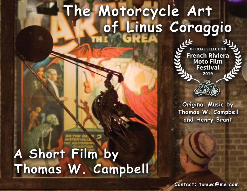 I made The Motorcycle Art of Linus Coraggio with Linus in 2018. The film screened at a number of festivals both here and abroad, including the French Riviera Motorcycle Film Festival in Nice, France.